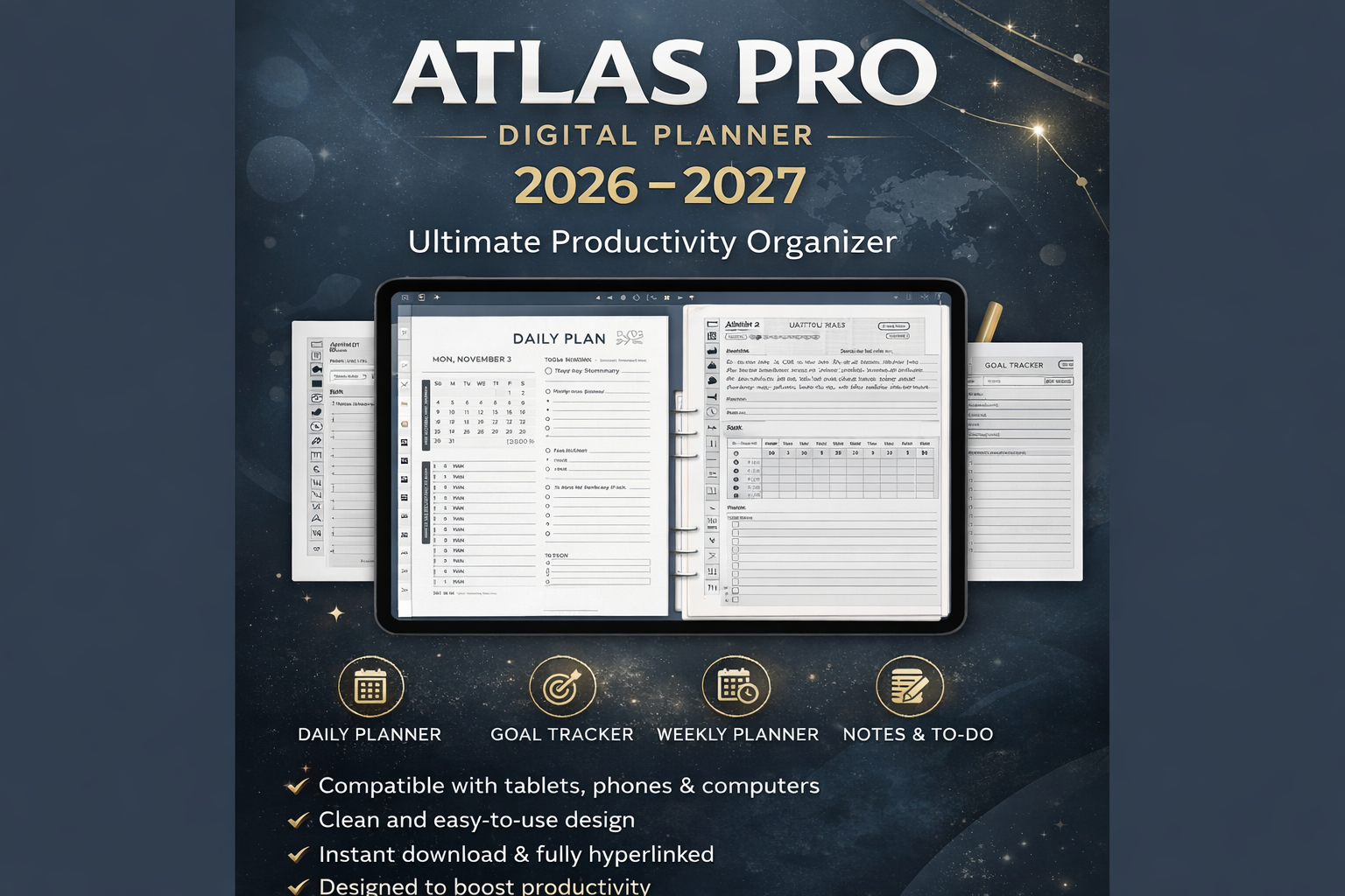 Take control of your time and boost your productivity with the Atlas Pro Ultimate Digital Planner 2026–2027.